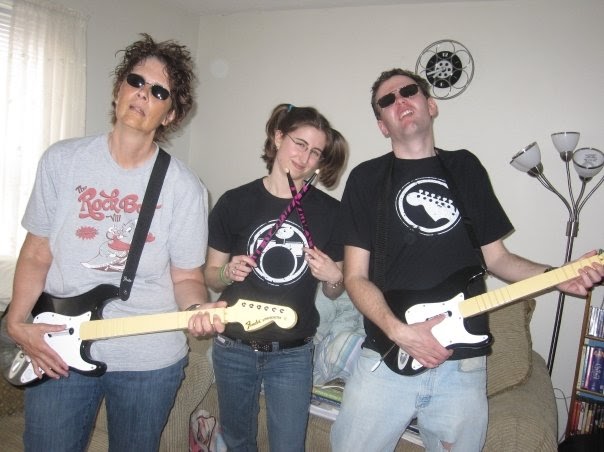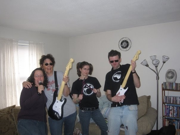 {here’s what happens when your Mom, best friend, and then-boyfriend get a little too into Rock Band, which is a video game if you don’t know. They start believing they are really rockstars. Then you talk them into posing. Spiking their hair. Wearing sunglasses. And letting you take pictures. Priceless.}