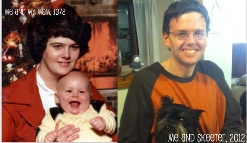 -I apparently look like my Mom. To the point that people at work saw an old photo hanging in my cubicle of my Mom holding me as a baby, and asked whose baby I was holding. Sometimes when I need a haircut Jenn says I start to look like her.