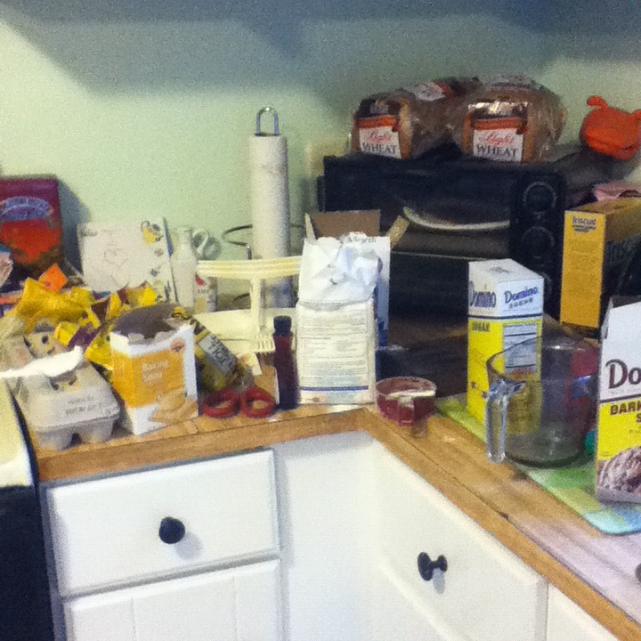 {Here’s what my kitchen looks like when I dare bake. From scratch.}