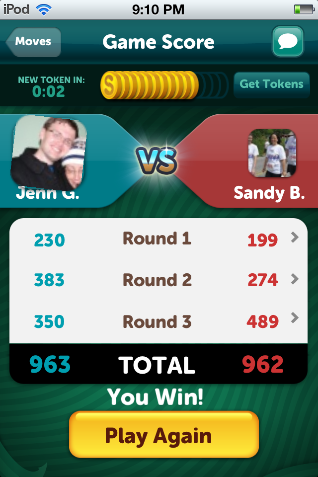 {Mom came THISCLOSE to beating me at Scramble with Friends. THISCLOSE!}