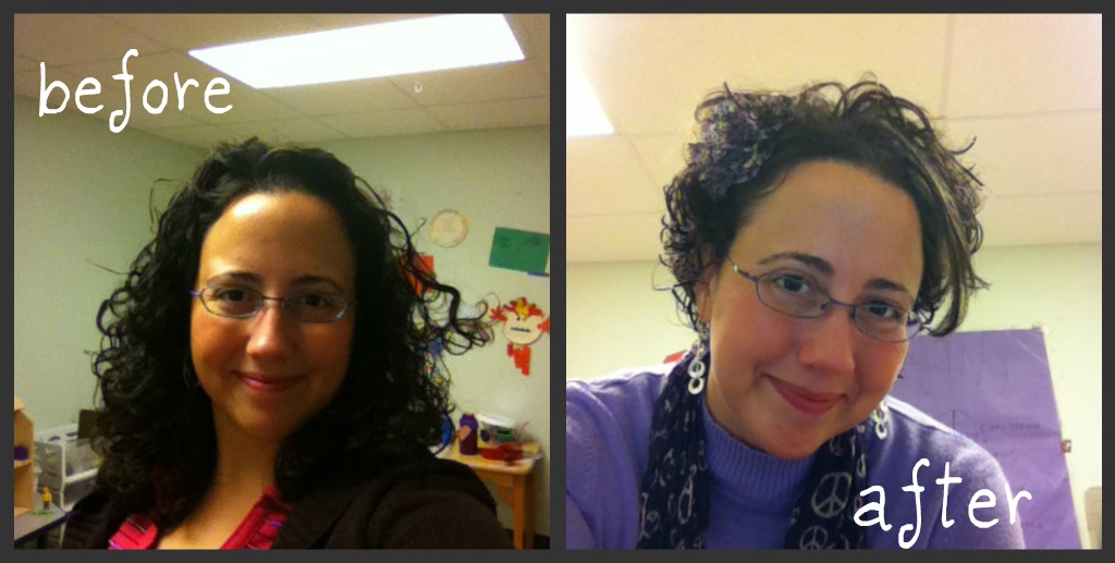 LOVE it! I am not usually a fan of curls in the back, straight in the front (ugh — especially straight bangs!), but your side-swept style is cute!! As a fellow curly, I have to wonder how scary it looks in the morning after sleeping! 😉 Love ya!!