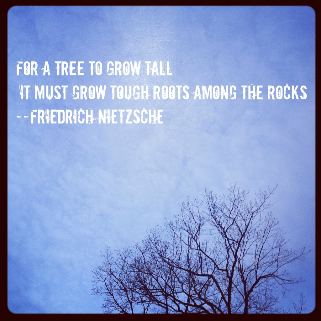 I took this picture on a walk over the weekend. Trees never cease to amaze me, with infinite analogies to life. Strong roots. The need for both rain and sun to create their strength. Their ability to withstand storms. Branches that sometimes crack and fall. New branches that grow and take their place – even stronger. Their willingness to reach for the sky, even with the odds of wind and gravity against them. They bend, they break, they grow, and they leave people around them in awe.