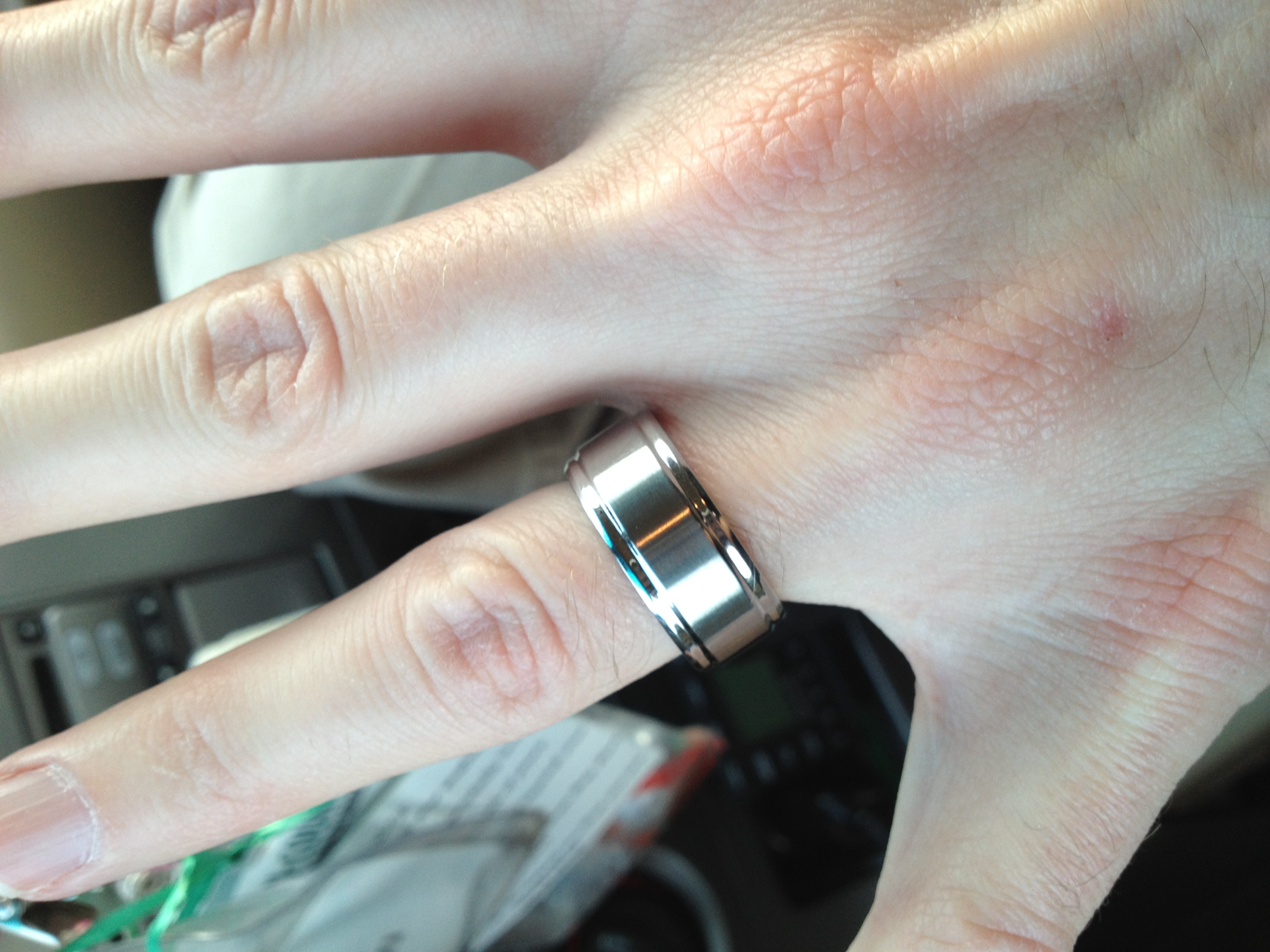I surprised Casey and ordered him another wedding ring! Do you like it? Seeing how our wedding bands were originally engraved with “so this is love,” I’m going to get this one engraved with “so this is love… part two”.. 😉