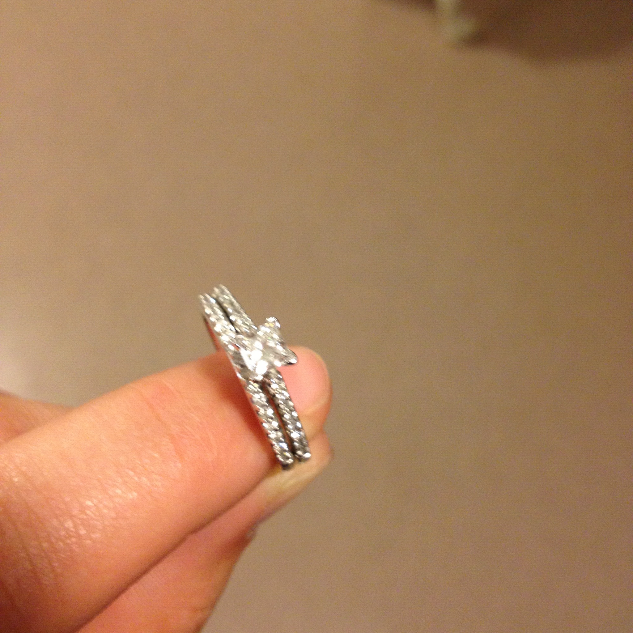 So on Thursday, March 26th, 2009, Stacey and I took advantage of the fact that Jenn worked late on Thursdays and snuck away to go ring shopping. We made plans to hit every jewelry store in and around the Maine Mall. The shopping excursion took less time than we realized, however, as it only took three rings at the first store to find the right one.